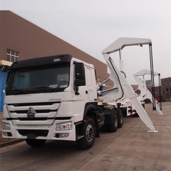The self loader truck is used for lifting and carrying 20ft containers in port, station and freight yard,the trailer’s hydraulic system power is from PTO in tractor truck, it can be operated both wireless remote control and manual operation.Side loaders are not only competent, they are also more efficient than other more traditional loaders.