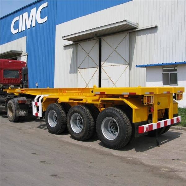 CIMC tri axle chassis's working life is over 5 times higher than other brand trailer. 20 ft skeletal trailers is a fixed structure commonly used in the transportation of containers. It is mainly of a steel construction where containers are loaded and uploaded using overhead cranes. Tri axle container chassis provides you with the option of taking high weight container while at the same time giving you options to make adjustments to desirable maneuverability. This type of trailer is a simple yet strong and is capable to serve you even in rugged topography.